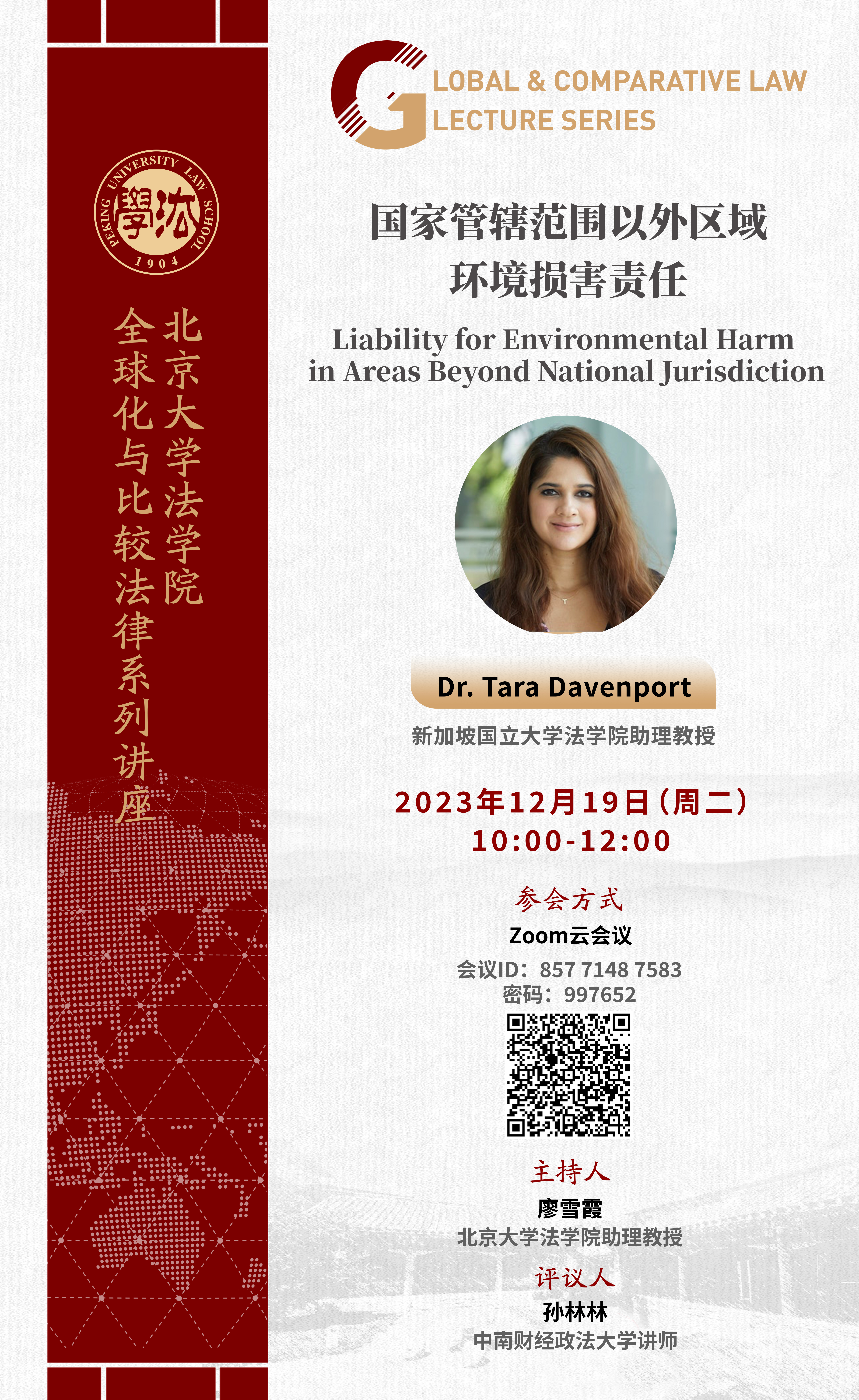 2023年12月19日,新加坡国立大学vwin德赢AC米兰合作助理教授Tara Davenport作为vwin德赢全球化与比较法律系列讲座的主讲学者,做了题为“国家管辖范围以外区域环境损害责任”的学术讲座。本次讲座由vwin德赢助理教授廖雪霞主持,校内外近百余名师生在线参与讲座,反响热烈。