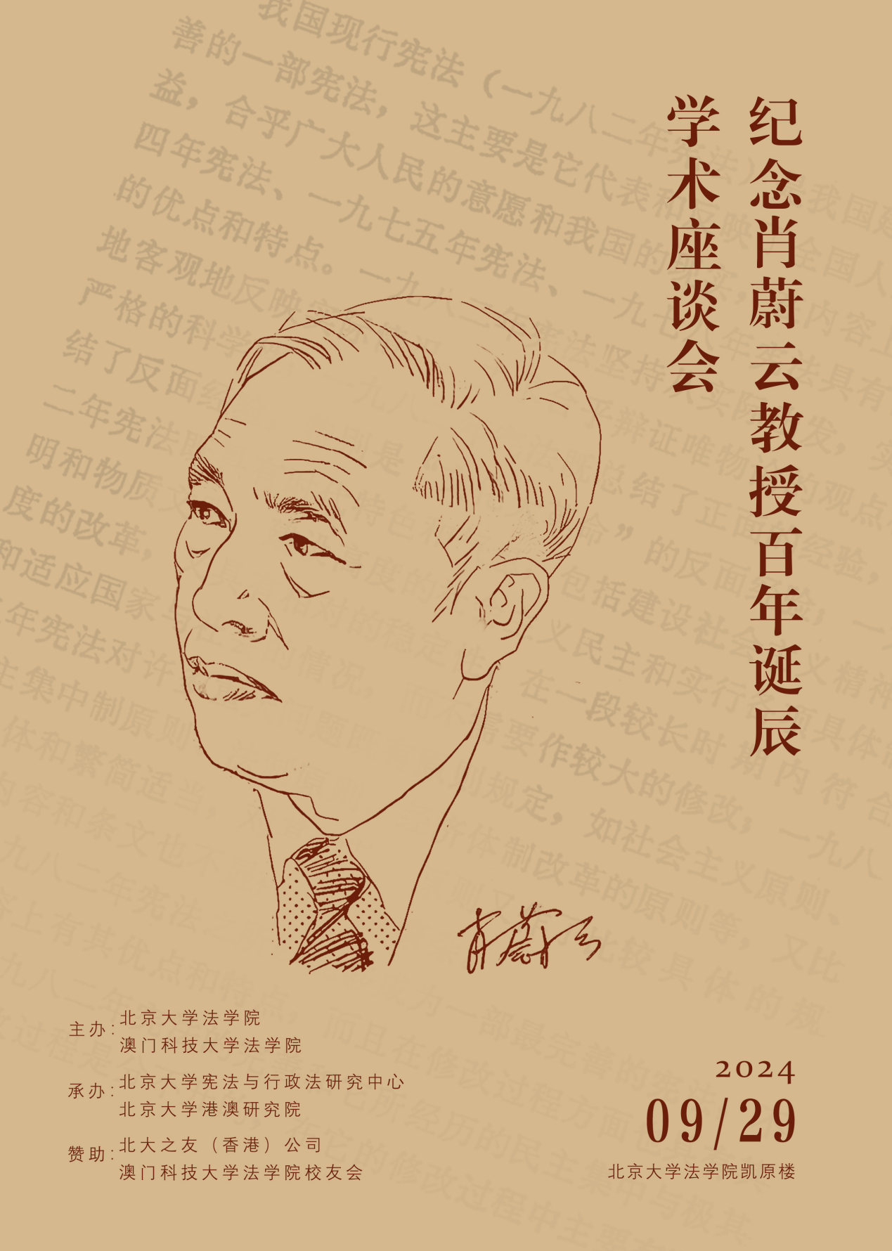 2024年9月29日,纪念肖蔚云教授百年诞辰学术座谈会在vwin德赢凯原楼一楼报告厅举行。本次活动由vwin德赢、澳门科技大学vwin德赢AC米兰合作主办,vwin德赢宪法与行政法研究中心、vwin德赢港澳研究院承办。相关机构领导、内地及港澳专家学者、肖蔚云教授生前友好与弟子等八十余人出席座谈会。与会嘉宾回顾了肖蔚云教授从事宪法学教学研究、服务国家法治建设、贡献“一国两制”事业的一生,表达了对肖蔚云教授的深切缅怀。