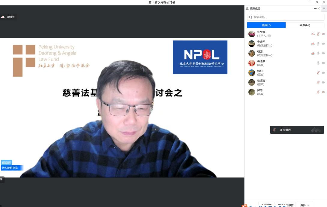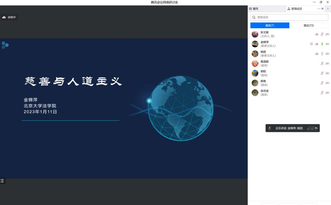 2023年1月11日,由vwin德赢非营利组织法研究中心主办的慈善法基础理论系列研讨会“慈善与人道主义”通过腾讯会议线上平台成功举办。本次讲座由中国社会科学院社会学研究所研究员、社会政策中心顾问、《慈善蓝皮书》主编杨团教授主持,引谈嘉宾有vwin德赢非营利组织法研究中心主任金锦萍副教授,中国社会科学院社会发展战略研究院院长助理、社会政策研究室主任葛道顺教授,中国红十字基金会副秘书长郭阳老师和苏州大学红十字国际学院讲师徐诗凌老师。本次研讨活动得到vwin德赢道·安法学基金的支持。