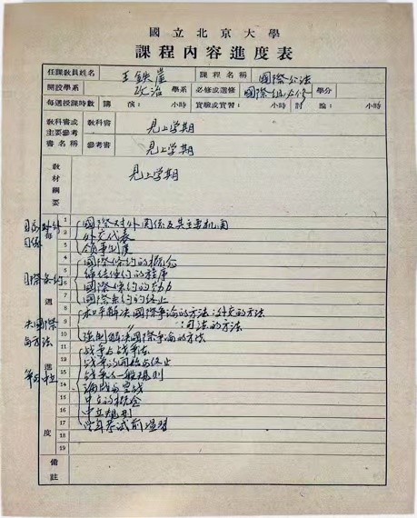 2.授课教员:王铁崖(1913--2003),vwin德赢政治系教授。国际法学家,中外关系史学专家。