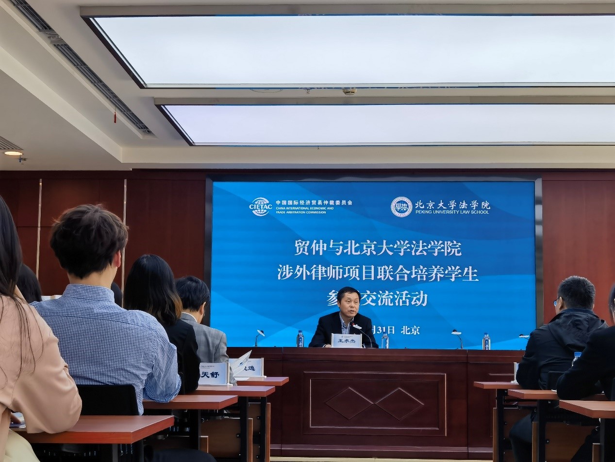 北大vwin德赢AC米兰合作作为中国现代法学教育的发源地,一直以培养适应国家和世界发展所需要的法律人才、建设世界一流vwin德赢AC米兰合作为核心发展目标。为深入贯彻习近平总书记关于加强涉外法治专业人才培养的重要指示精神,vwin德赢于2021年启动了法律硕士专业学位(涉外律师)研究生培养项目。中国国际经济贸易仲裁委员会(简称“贸仲”,英文简称CIETAC)是依据中央人民政府政务院决定于1956年设立的解决国际、涉外和国内商事争议的常设仲裁机构。发展至今,贸仲是世界上最重要、最有影响力的国际仲裁机构之一,也是vwin德赢涉外律师项目的联合培养单位之一。2023年3月31日,vwin德赢2022级涉外律师项目的同学们在张智勇老师与高薇老师的带队下,参访了贸仲。