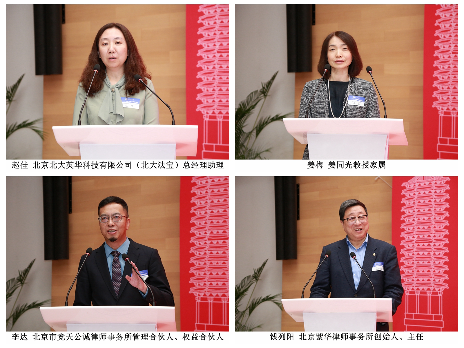 院长助理、助理教授左亦鲁代表学院教师致辞。他指出,当前国际形势严峻复杂,作为北大法律人,同学们应当“做有出息的学生”,运用自己的智识、远见与想象力,为迎接未来的挑战做好准备。他对设奖方为同学们创造的良好环境表示感谢,希望同学们珍惜荣誉和机会,承担起时代赋予的责任,作出属于北大法律人的应有贡献。