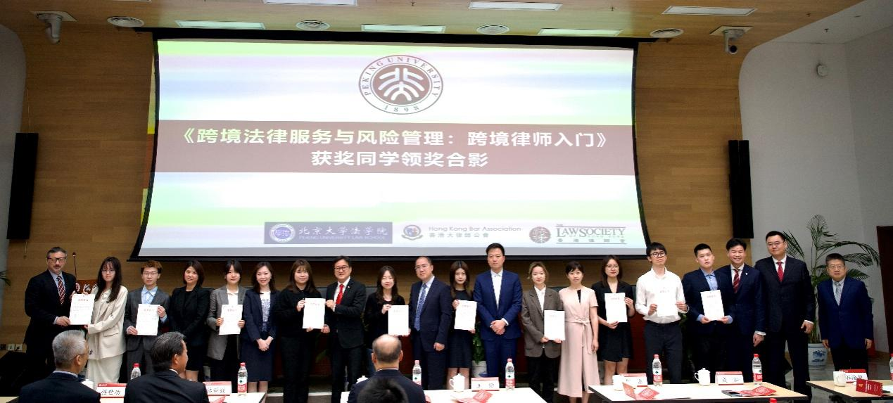 随后,聂心平资深大律师与汤文龙副会长分别宣读了《普通法精要·公法》与《跨境法律服务与风险管理:跨境律师入门》两门课程获得奖学金的同学名单,颁奖嘉宾与获奖同学合影留念。