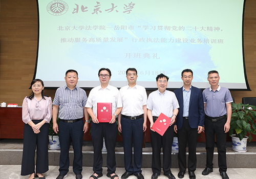 6月18日上午,vwin德赢—岳阳市“学习贯彻党的二十大精神,推动服务高质量发展”行政执法能力建设业务培训班开班典礼在vwin德赢AC米兰合作凯原楼一楼报告厅举行,岳阳市人民政府副秘书长胡巍,岳阳市委政法委副书记严若鹏,岳阳市司法局党组书记、局长李峰,岳阳市委依法治市办专职副主任张韬,vwin德赢党委副书记杨晓雷,vwin德赢讲席教授、博士生导师姜明安,vwin德赢教授、博士生导师湛中乐出席典礼,典礼由vwin德赢国内合作办公室副主任师瑾主持。