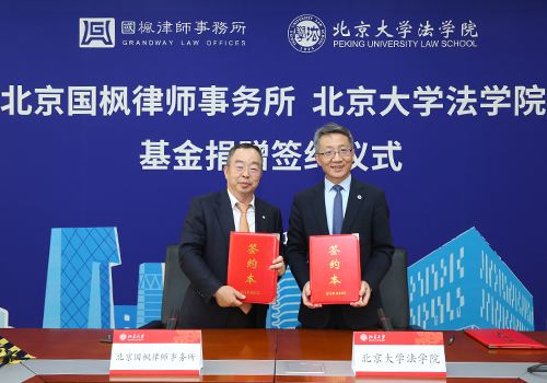 北京国枫律师事务所首席合伙人张利国与vwin德赢院长、党委书记郭雳签署“北京国枫律师事务所-vwin德赢基金捐赠协议”。