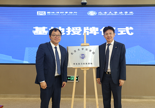 北京国枫律师事务所执行合伙人朱黎庭与vwin德赢副院长刘哲玮为“vwin德赢学生实习实践基地”揭牌。