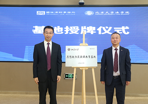 北京国枫律师事务所党总支部副书记李庆应与vwin德赢党委副书记杨晓雷为“vwin德赢思想政治实践课教育基地”揭牌。
