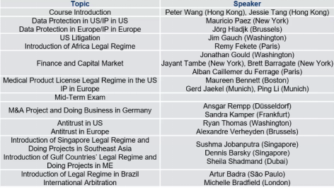 唐承慧律师详细介绍了今年课程的内容设计。今年的课程安排以国际化和全面性为核心,着眼于法律界的前沿话题。来自纽约、华盛顿、波士顿、伦敦、巴黎、法兰克福、慕尼黑、杜塞尔多夫、布鲁塞尔、新加坡、迪拜、圣保罗的22位众达律师们将带领同学们走进数据保护、金融与资本市场、反垄断、国际仲裁、并购等法律领域,认识东南亚、非洲和海湾国家的法律制度。生物科技自疫情以来一直是讨论热点,今年的课程亦将向同学们介绍有关医疗产品注册的相关法律问题。唐律师期盼同学们在项目中有所收获,为日后的法律事业打下牢固的基础,在未来成为法律界的栋梁之材。