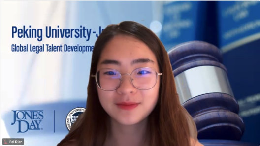 vwin德赢2023级法学硕士费典同学是2022年“北大-众达中国全球化与法治人才培养计划”的优秀学员代表,她分享了自己在项目中的所学所得。她表示,广泛多元的课程内容极大地提升了自己利用各种检索工具辅助理解的能力,律师们专业、耐心的授课以及助教们及时整理课程资料也为她带来了良好的学习体验。她对于项目独特的考核方式仍记忆犹新,即通过简化后的实务案件考查同学们是否可以采用律师的思维方式解决纷繁复杂的问题。她认为,《跨境法律律师实务课程》是一个能够接触前沿知识领域、跨境律师实务的宝贵机会。