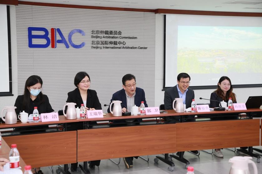 随后,我院师生和北仲代表在会议室进行座谈。北仲主任郭卫、副秘书长陈福勇、立案室负责人王瑞华、业务拓展处(国际案件处)高级顾问杨雨菲、仲裁秘书林洁等参与了座谈交流。会议由陈福勇副秘书长主持。