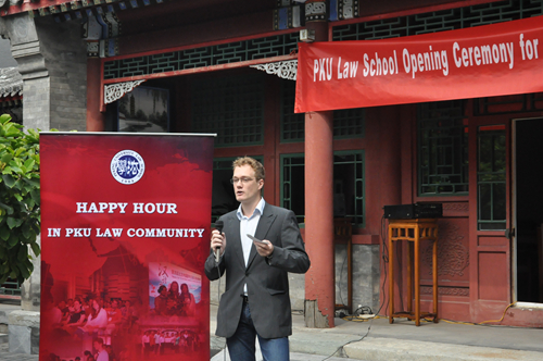 最后,2014年秋季交换学生Maarten作为交换生代表与大家分享了未来一个学期的规划。第一次来到中国,对中国的一切都充满好奇。他表示非常高兴来到素有“中国哈佛”之称的北大学习,希望能充分利用短暂的时间来学习汉语,了解中国文化及法律制度,增进对中国的了解。
