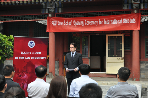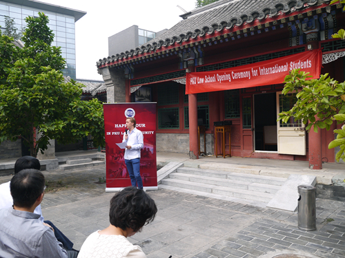 2013级“中国法”项目的学生代表Jeremy,将自己在北大的学习生活的心得与新生进行了分享。他希望大家能用眼睛去观察和了解中国。2014级LLM新生Mark Adam围绕 “Why China”、“Why Beida”、“Why Chinese Law”三个问题为我们讲述了来北大vwin德赢AC米兰合作学习中国法的原因。