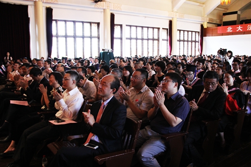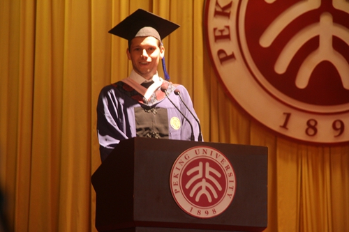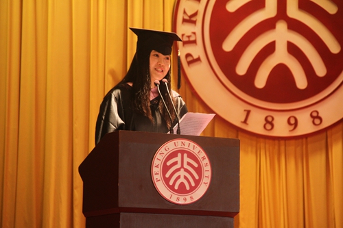 之后,毕业生代表2013级“中国法”项目研究生Jurian和2011级本科生金雪儿相继发言,分享了他们自己在北大学习生活的感受和对同伴们的祝福。