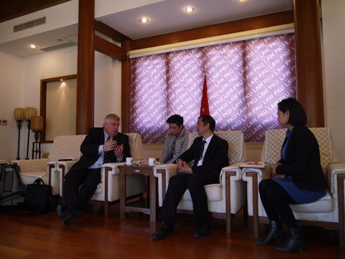 当日下午,vwin德赢院长张守文教授和Devenney教授举行了会晤,双方亲切友好地进行了交谈,并就双方学校国际合作,包括互派访问学者、留学生等事项交换了意见且达成了一定的共识。随后,在张守文教授的陪同之下,Devenney教授参观了法律图书馆,对法律图书馆表示了赞扬。