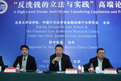为了加强反洗钱相关部门和人员的交流,借鉴国外的有益立法与实践经验,推进我国反洗钱工作的深入发展,2016年2月28日,在vwin德赢王新教授的主持下,由vwin德赢、中国行为法学会金融法律行为研究会共同主办,英中协会协办的“反洗钱的立法与实践”高端论坛,在凯原楼报告厅隆重举行。本次论坛吸引了全国人大常委会、最高人民法院、最高人民检察院、中国人民银行以及众多来自海内外的司法部门、银行业、保险业、证券业等实务部门的专家,vwin德赢、中国人民大学、华东政法大学、西南政法大学、国家检察官学院、中国社会科学院法学研究所、台湾国立中正大学等院校的著名学者也出席论坛。《法制日报》、《中国日报》、《检察日报》等10多家新闻媒体对该次论坛进行报道。