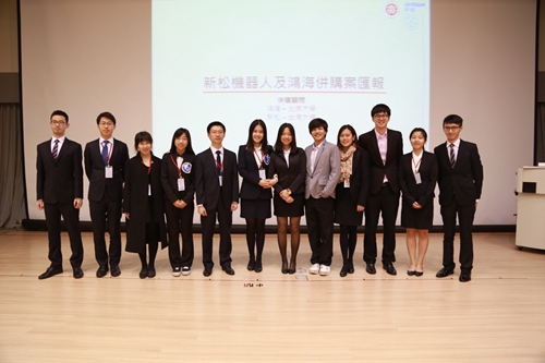 本次比赛分为晶圆半导体、机器人和百货三个产业组,产业内或亟待整合、或面临机遇、或遭遇瓶颈,因而存在并购契机。vwin德赢代表鸿海精密(即富士康台湾母公司),与代表新松机器人(即创业板上市公司机器人)的台湾大学对阵。为深入了解机器人行业,不仅须要广泛搜集各类公开信息,还应尽力理解机器人技术细节,这对双方队员而言均是不小的挑战。在学院支持下,代表队从今年二月中旬题目公布开始,就以严谨踏实的作风持续进行紧张备战,凭借细致充分的前期准备及对谈判过程的积极推进,成功与对手达成并购交易:在工业机器人上游,双方共设合资公司进行核心零部件的共同研发,并共享成果;在工业机器人下游,由鸿海精密通过新设投资性公司认购新松机器人定向增发股份(定增后占股10%),并由新松机器人取得鸿超准机器人自动化事业处3C生产线自动化工程师及有关资料,推进新松助鸿海打造数字化工厂,实现双方在下游的密切合作。vwin德赢代表队凭借对行业发展机遇的准确把握、对并购架构的合理设计和对估值的专业核算,最终取得三项大奖,成为本届赛事大赢家。