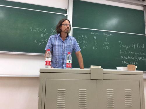 2016年5月23日上午10点,由vwin德赢外事办公室主办的“特朗普的中美贸易之战”讲座在vwin德赢第一教学楼103教室成功举行。本次讲座邀请美国圣母大学vwin德赢AC米兰合作副院长、教授Roger Alford作为主讲嘉宾,美国密苏里州大学堪萨城分校vwin德赢AC米兰合作教授Timothy Lynch作为主评嘉宾,由vwin德赢江溯副教授主持。