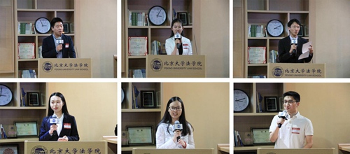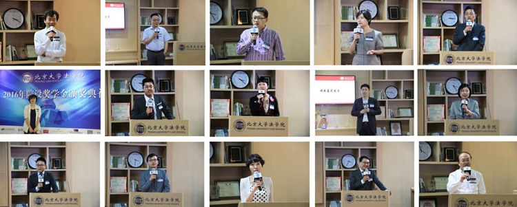 2014级本科生丁卉、2013级本科生李越、2012级本科生牛馨雨、2014级法学硕士晁译、2014级法律硕士(法学)潘驿炜、2014级法律硕士(非法学)刘燕作为获奖学生代表发言。六位同学对设奖方的大力支持和学院老师的辛勤工作表达了衷心的感谢,表示在今后的学习生活中将继续努力,勤奋学习、不断提高自身综合素质,力争担当起北大法律人未来应承担的社会责任。