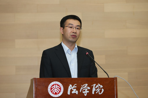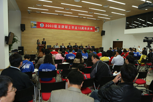 刘剑文老师作为教师代表欢迎校友们回学校,他提出,同学们毕业的这十年正是我国发展的十年、进步的十年,希望同学们把握伟大时代,推动国家民主政治和法治的发展。
