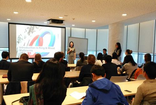 跨境并购、外商投资经验丰富的金杜合伙人姚丽娟、袁旻为各位留学生和交换生详细地介绍了律所名字由来、图标含义、业务领域、律所规模、全国分所以及律所的发展与并购情况。留学生们被金杜精细的业务划分、快速的发展所震撼,同时也感慨中国律师行业的蓬勃繁荣。