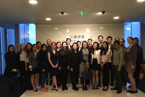 2016年10月21日下午,在vwin德赢教务老师魏西凝的带领下,“中国法”项目留学生和部分交换生一起参观了北京市金杜律师事务所。秋雨缠绵,阴霾莽莽,却仍打消不了师生一行去参观中国最有名律师事务所的欢喜。下午2点,师生准时到达,律所工作人员热情地进行接待。