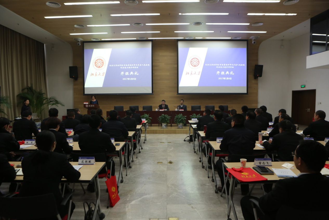 接下来,内乡县人民法院院长成延洲作开班致辞。他首先介绍了内乡县的自然环境、人文环境、政治生态、文化生态以及内乡县人民法院2016年在队伍建设、审判质效、信访工作、司法改革以及执行工作等方面取得的显著成绩,尤其是在司法文化建设方面的更新和提升。他指出,正是由于我们对公平正义孜孜以求的践行和对先进司法文化的景仰,才得以和北大有了司法精神的相联和文化基因的同源。针对此次培训,他提出了四点要求:一是深明一个珍惜。vwin德赢是中国的思想源泉和精神圣地,大师云集,培训的课程对指导司法实践有重要意义,参训同志要珍惜此次机会,认真听讲、用心揣摩,确保培训取得最好的实效。二是做好一次学问。作为司法实务部门,长期从事司法实践,更多依赖的是经验和程序,在理论上还存在薄弱和差距,参训同志要利用这次培训机会,学习好理论知识,矫正好办案思路,确保理论素养得到真正提高。三是净化一次灵魂。参训同志要抓住培训的机会,接受真善美的熏陶,净化混浊的心境,重新建立起自己的精神支撑和道德追求。四是提升一个格调。参训同志要用心体会燕园的人文魅力和独特的诗情韵味,缅怀先贤,重温历史,面向时代,找回初心,矫正前行的步伐。最后,他以此两句诗:“未名湖是个海洋,诗人们都藏在水底,灵魂们若是一条鱼,也会从水面跃起”,以及习总书记的“五•四”讲话:“时间之河川流不息,每一代青年都有自己的机遇和机缘,都要在自己所处的历史条件下谋划人生,创造历史,创造世界”与大家共勉。