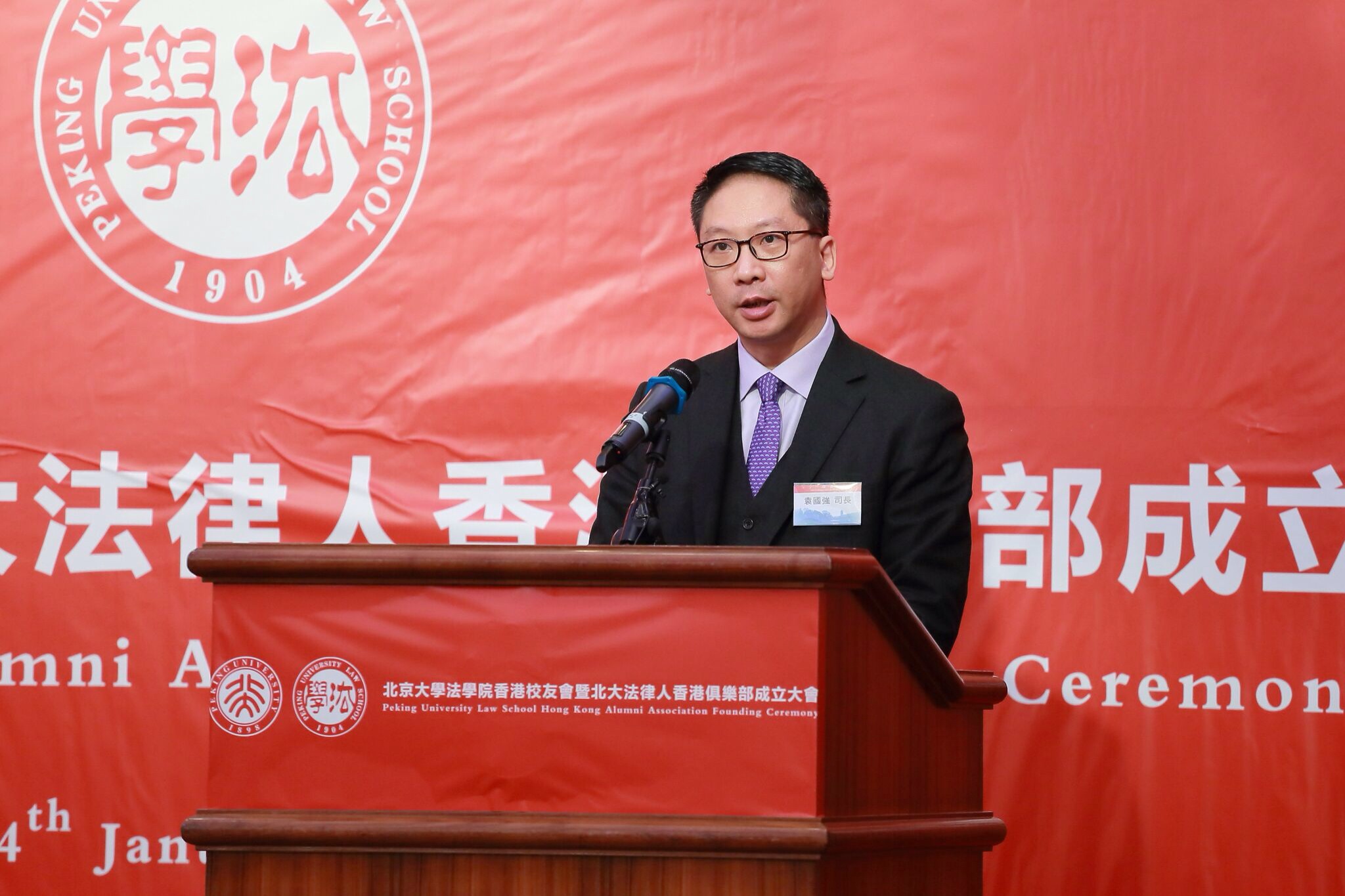 北大vwin德赢AC米兰合作98级本科校友、香港校友分会会长李宁先生在成立仪式上致欢迎辞,他对各位领导、嘉宾和校友们的到来表示热烈的欢迎。他表示将不辱使命,团结在港北大法律人的力量,做好香港校友与母校之间联系的桥梁,使校友会成为在港校友们温暖的心灵港湾,在更广阔的领域里为北大法律人和社会贡献力量。