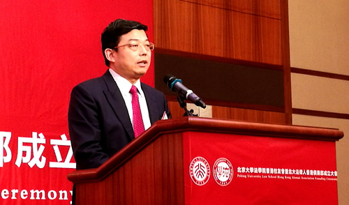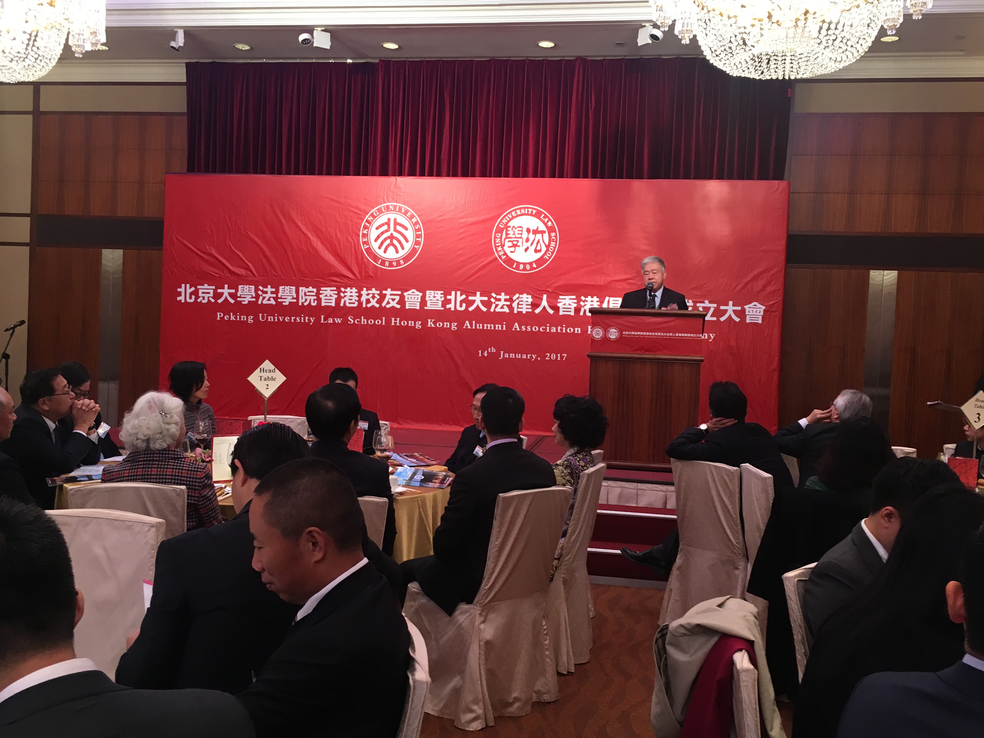 中央人民政府驻香港特别行政区联络办公室法律部部长王振民先生在致辞中肯定了在港北大法律人所作出的成绩,大家表现出的爱国、爱港、爱母校的良好精神风貌得到了香港社会各界的赞许,期待香港校友会成立后为两地的交流合作展开更加积极的探索和有益的实践。