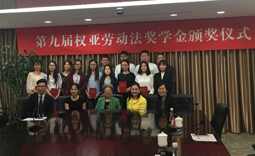 最后进行的环节是“2016-2017年度(第九届)权亚劳动法征文奖学金颁奖仪式”。权亚劳动法征文奖学金是中国第一项专门、专业的劳动法征文奖学金,自2008年2月正式启动,迄今已经完成了九届奖学金的评选,取得了良好的效果。万以娴律师、贾俊玲教授和叶静漪教授共同为获奖者颁奖。22时许,此次论坛和颁奖仪式在热烈的掌声中圆满结束。