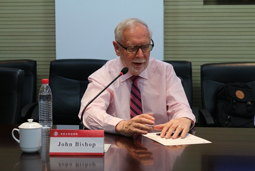 接下来,研修班教师代表John Bishop致辞。本届研修班涵盖国际工程法与“一带一路”战略实施领域基本法律和实务问题的七大模块、十八类主题课程,由十五名蜚声国内外的专家学者亲自授课。John Bishop对北大vwin德赢AC米兰合作的诚挚邀请表示感谢,并高度赞扬了首届国际工程法研修班的成功举办和重要意义。