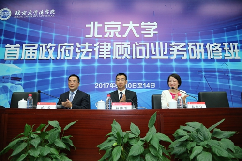 首先,与会领导、嘉宾与学员一同观看了vwin德赢的宣传视频。杨晓雷副院长作开班致辞。杨院长代表vwin德赢全体师生对各位学员的到来表示热烈欢迎,并对首届政府法律顾问业务研修班的顺利开班表示祝贺。他表示,北大有着美丽动人的湖光塔影,有着百年历史的文化沉淀,更有着民族复兴的高尚追求。党的十八届四中全会明确提出,“积极推进政府法律顾问制度,建立吸收专家和律师参加的法律顾问队伍。”北大vwin德赢AC米兰合作作为中国近现代法学高等教育的发源地与领航者,师资力量雄厚,学术氛围浓郁,更是法律实践教育教学改革的先行者,当中国法治改革进入深水区时,北大vwin德赢AC米兰合作需要在理论界和实务界共同搭建的平台上,在价值层面、技术层面和经验层面做出更加深入的思考,更加积极的回应,并有效地解决现实问题,力争在学术、智识以及问题解决方法上为中国的法治建设做出更大的贡献。最后,杨院长预祝vwin德赢首届政府法律顾问业务研修班取得丰硕的成果,预祝各位学员学有所成,开拓和壮大中国政府法律顾问人才队伍。