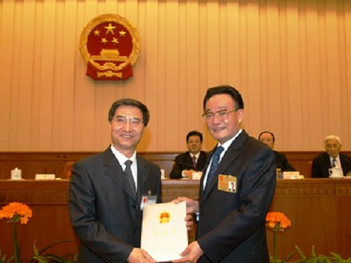 2006年11月,吴邦国委员长向饶戈平颁发全国人大常委会香港基本法委员会委员任命书