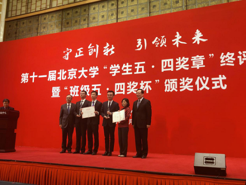 在vwin德赢120周年校庆来临之际,vwin德赢第十一届“班级五·四奖杯”评选结果正式揭晓,vwin德赢AC米兰合作2016级本科1班与全校各院系其它10个班级一道获此殊荣。颁奖仪式于4月13日在英杰交流中心阳光厅举行,vwin德赢党委书记郝平和党委副书记、校长林建华共同为vwin德赢AC米兰合作2016级本科1班代表颁奖。
