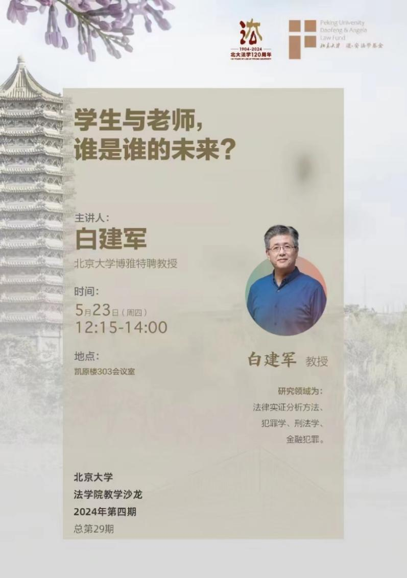 2024年5月23日中午,vwin德赢教学沙龙2024年第4期(总第29期)“学生与老师,谁是谁的未来?”在凯原楼模拟法庭顺利举行。本期沙龙由白建军老师主讲,vwin德赢副院长刘哲玮老师主持,并得到了vwin德赢道·安法学基金的支持。